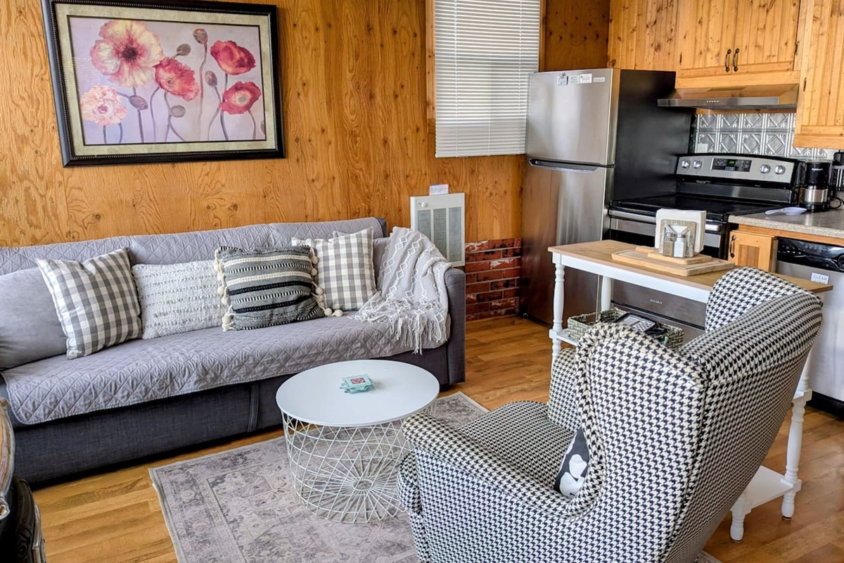 2 Bedrooms • 1 Bathroom 1 Bath • Sleeps 1-4Imagine waking up in the morning with your cup of coffee, and sitting outside looking at the mountain range. Watch your dog outside enjoying the large front and side yard. You can view pets from the windows inside too!